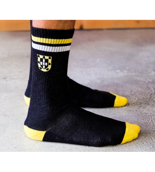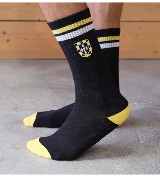 Esta vez, queríamos hacer algo diferente, ¡pero con la misma calidad! Siempre con el telón de fondo portugués, pero en esta ocasión combinamos la confección técnica de un calcetín deportivo con el estilo retro de unos calcetines multideporte, urbanos e informales, ideales para ir al gimnasio, pasar una tarde en el skatepark, caminar o correr, o simplemente porque quedan bien. Creíamos que estos calcetines tenían un espíritu aventurero en su esencia, así que decidimos bordar pequeños símbolos de la epopeya de los Descubrimientos portugueses. Esperamos que les guste tanto como a nosotros.