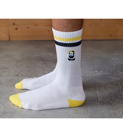 Esta vez, queríamos hacer algo diferente, ¡pero con la misma calidad! Siempre con el telón de fondo portugués, pero en esta ocasión combinamos la confección técnica de un calcetín deportivo con el estilo retro de unos calcetines multideporte, urbanos e informales, ideales para ir al gimnasio, pasar una tarde en el skatepark, caminar o correr, o simplemente porque quedan bien. Creíamos que estos calcetines tenían un espíritu aventurero en su esencia, así que decidimos bordar pequeños símbolos de la epopeya de los Descubrimientos portugueses. Esperamos que les guste tanto como a nosotros.