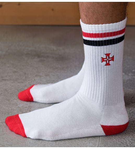 Esta vez, queríamos hacer algo diferente, ¡pero con la misma calidad! Siempre con el telón de fondo portugués, pero en esta ocasión combinamos la confección técnica de un calcetín deportivo con el estilo retro de unos calcetines multideporte, urbanos e informales, ideales para ir al gimnasio, pasar una tarde en el skatepark, caminar o correr, o simplemente porque quedan bien. Creíamos que estos calcetines tenían un espíritu aventurero en su esencia, así que decidimos bordar pequeños símbolos de la epopeya de los Descubrimientos portugueses. Esperamos que les guste tanto como a nosotros.