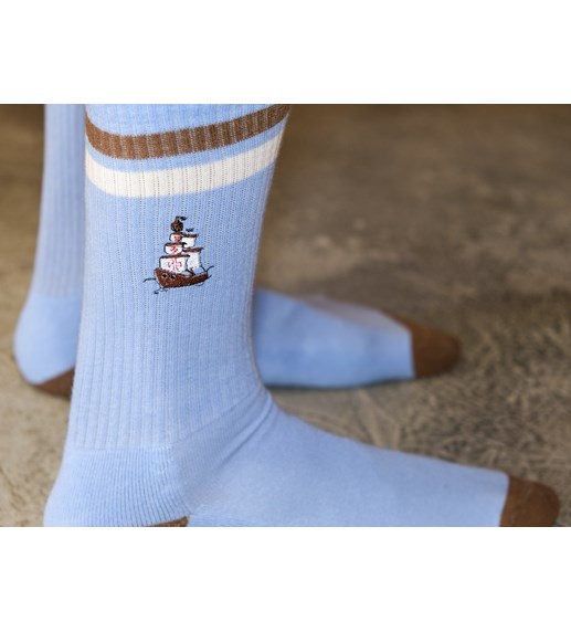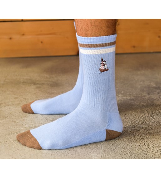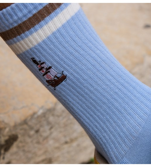 Cette fois, nous voulions quelque chose de différent, mais avec la même qualité ! Toujours dans un esprit portugais, nous avons combiné la construction technique d'une chaussette de sport avec le style rétro des chaussettes multisports, urbaines et décontractées, idéales pour aller à la salle de sport, passer une soirée au skatepark, marcher, courir, ou tout simplement pour leur élégance. Convaincus de l'esprit aventurier qui anime ces chaussettes, nous avons décidé de les broder de petits symboles de l'épopée des Grandes Découvertes portugaises. Nous espérons qu'elles vous plairont autant qu'à nous.